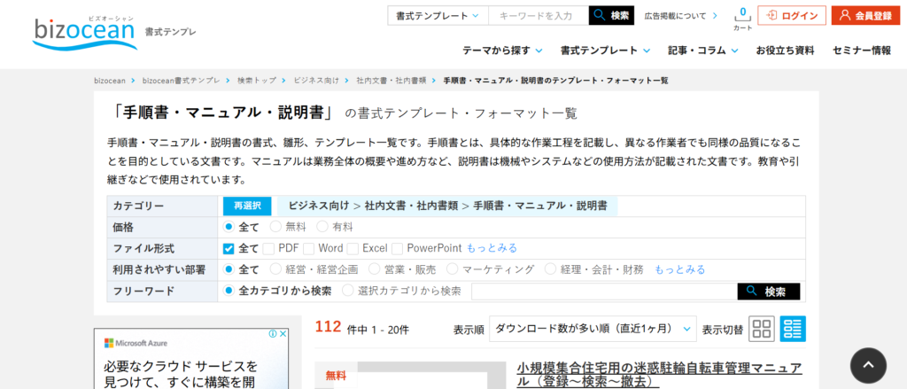 ダウンロードには会員登録が必要ですが、マニュアルのほかにも幅広いテンプレートが揃っており、必要なテンプレートを検索してすぐに探し出すことができます。